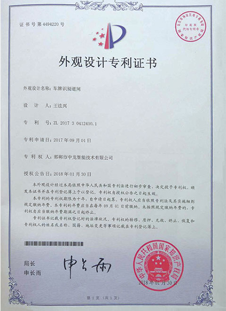 外觀注冊(cè)專(zhuān)利證書(shū)